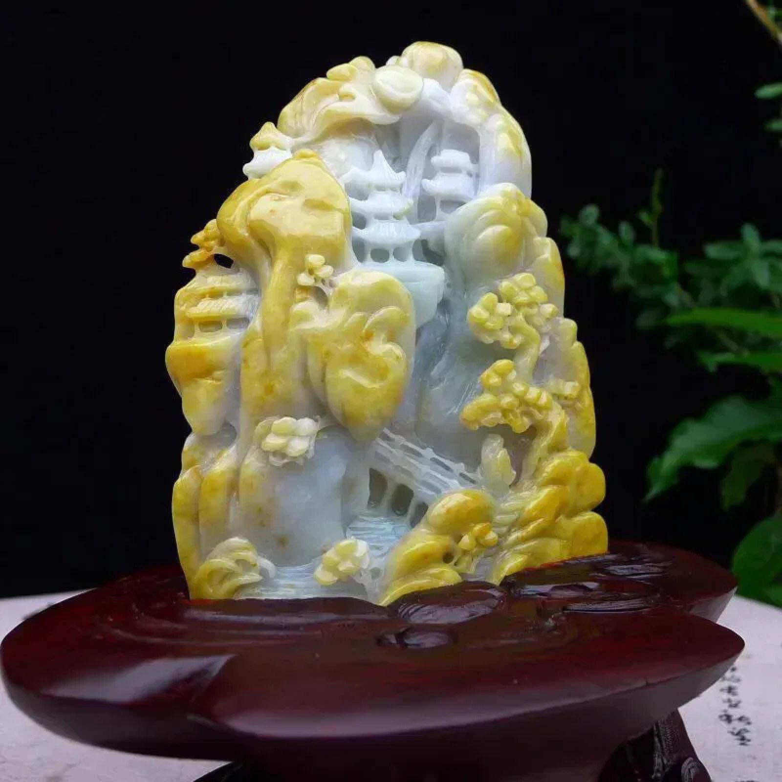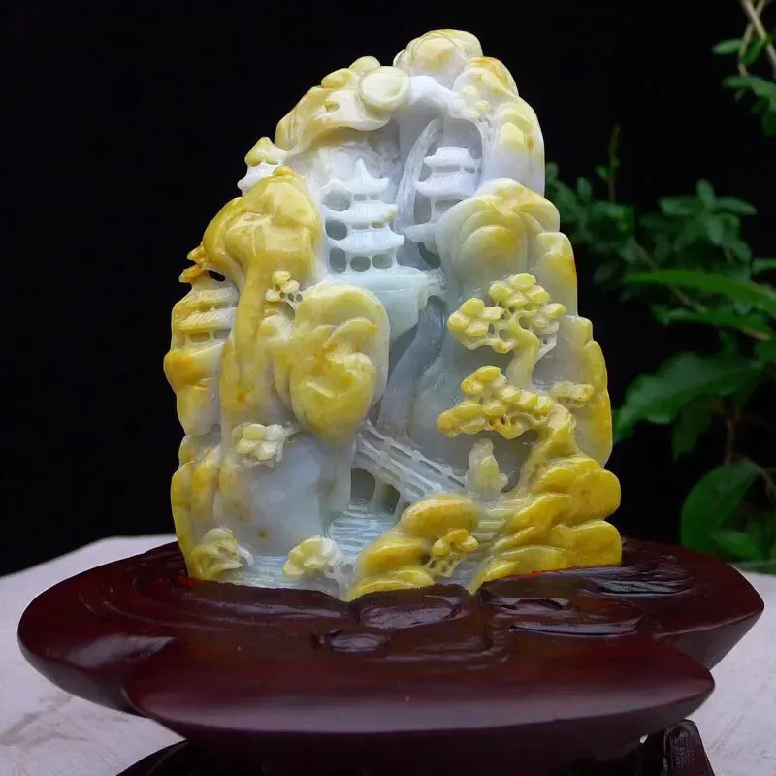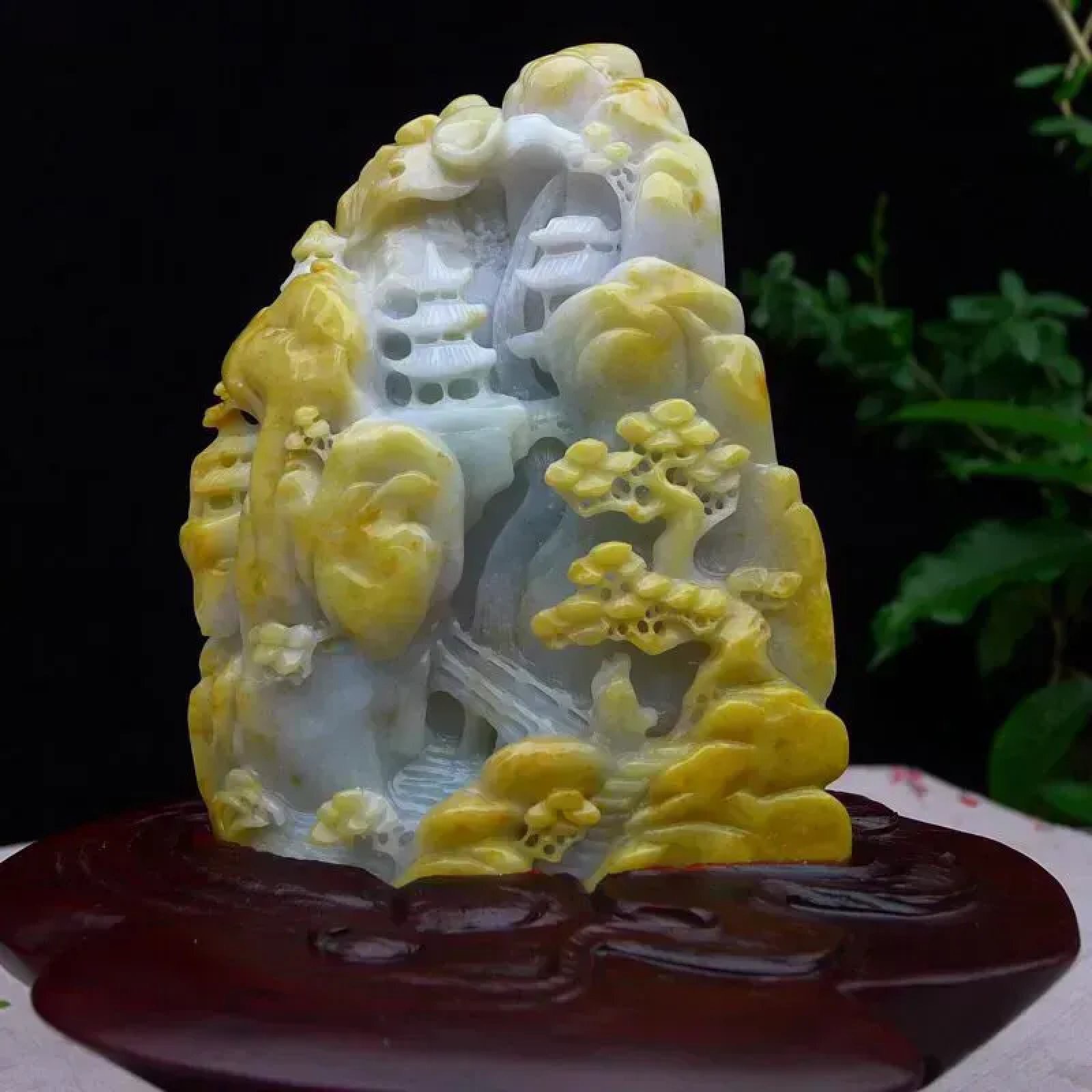 | 特点: | 翡翠简介:1. 老坑水润,质地温润,表面光泽柔和莹润。 2. 主体为淡白底,部分区域隐带浅绿色,搭配天然黄翡俏色:黄翡色泽柔和自然,巧妙分布于山石、枝叶等区域,属于 “俏色巧雕” 的优质搭配,色泽层次协调且视觉质感鲜明。3. 精工多层次镂空雕:包含亭台、松树、山石等山水元素,细节(如松枝纹理、亭台结构)刻画精细逼真;层次分明、立体感强,既还原了山水意境的悠然雅致,也体现了雕工的细腻功底。4. 寓意宁静致远、福寿绵长,搭配亭台景致,同时承载着安居乐业、逍遥自在的美好祈愿。5.适合放置在客厅博古架、书房案台或办公室展示柜等区域,契合山水摆件的雅致气质,也便于观赏其工艺细节。具有一定的艺术和收藏价值,是一件难得的精品摆件,值得您的拥有! |