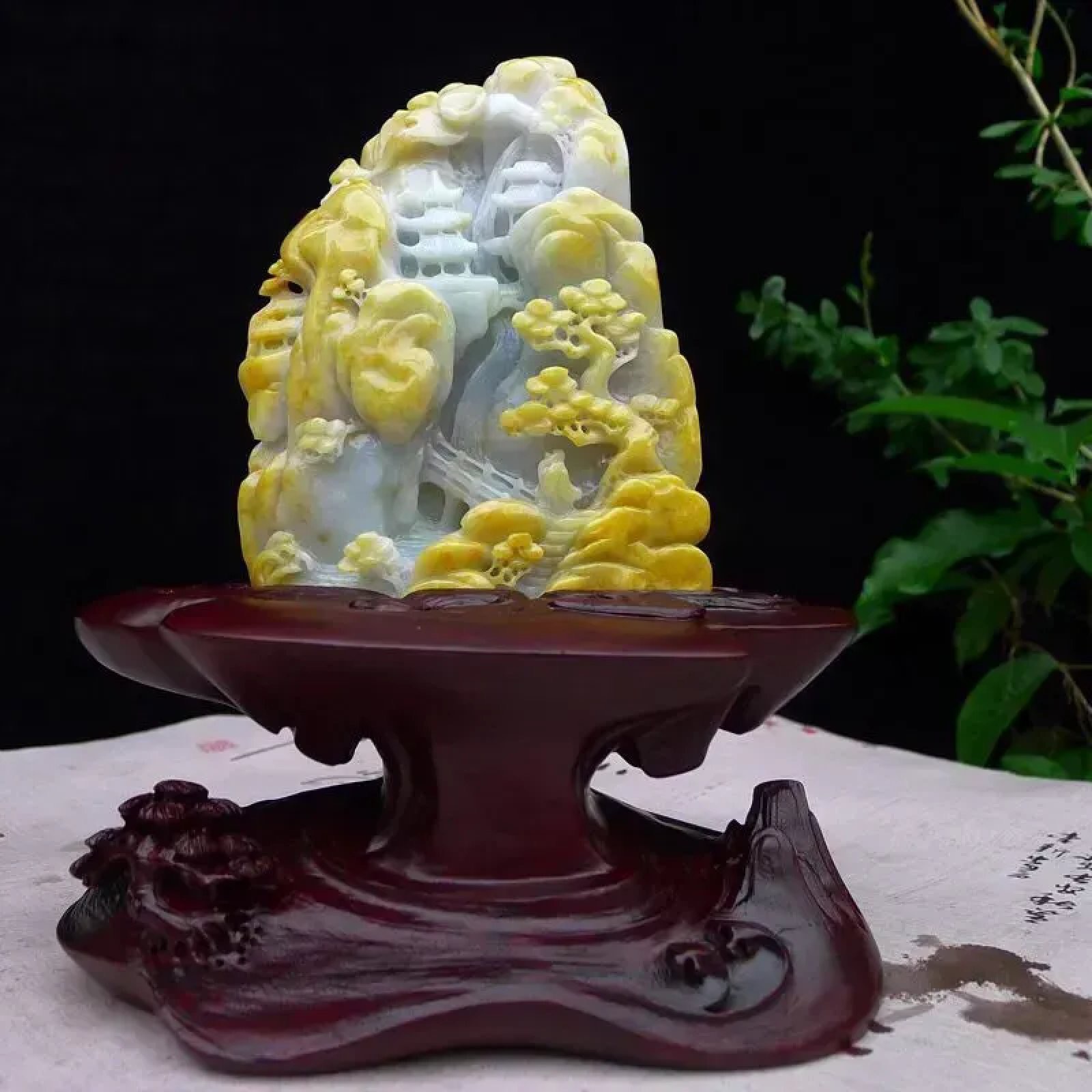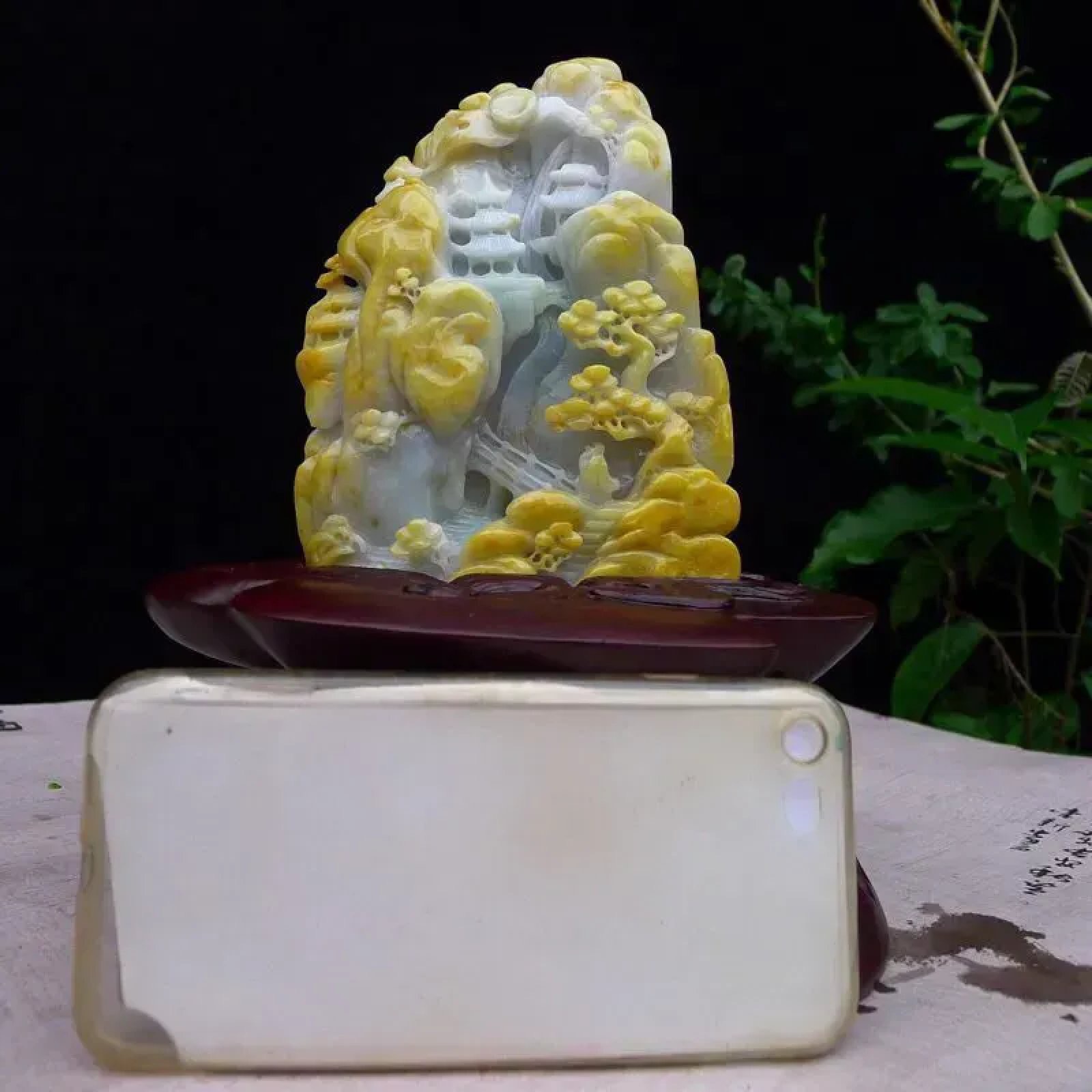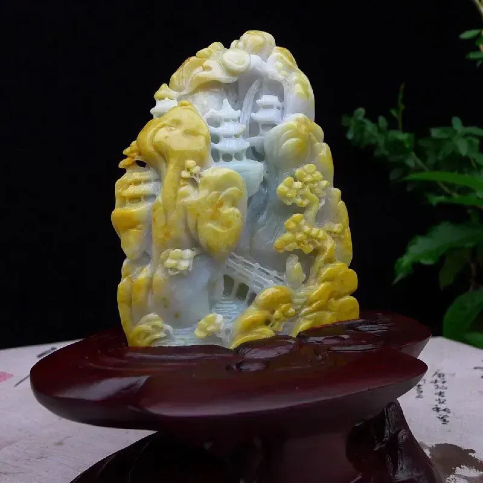 | 特点: | 翡翠简介:1. 老坑水润,质地温润,表面光泽柔和莹润。 2. 主体为淡白底,部分区域隐带浅绿色,搭配天然黄翡俏色:黄翡色泽柔和自然,巧妙分布于山石、枝叶等区域,属于 “俏色巧雕” 的优质搭配,色泽层次协调且视觉质感鲜明。3. 精工多层次镂空雕:包含亭台、松树、山石等山水元素,细节(如松枝纹理、亭台结构)刻画精细逼真;层次分明、立体感强,既还原了山水意境的悠然雅致,也体现了雕工的细腻功底。4. 寓意宁静致远、福寿绵长,搭配亭台景致,同时承载着安居乐业、逍遥自在的美好祈愿。5.适合放置在客厅博古架、书房案台或办公室展示柜等区域,契合山水摆件的雅致气质,也便于观赏其工艺细节。具有一定的艺术和收藏价值,是一件难得的精品摆件,值得您的拥有! |