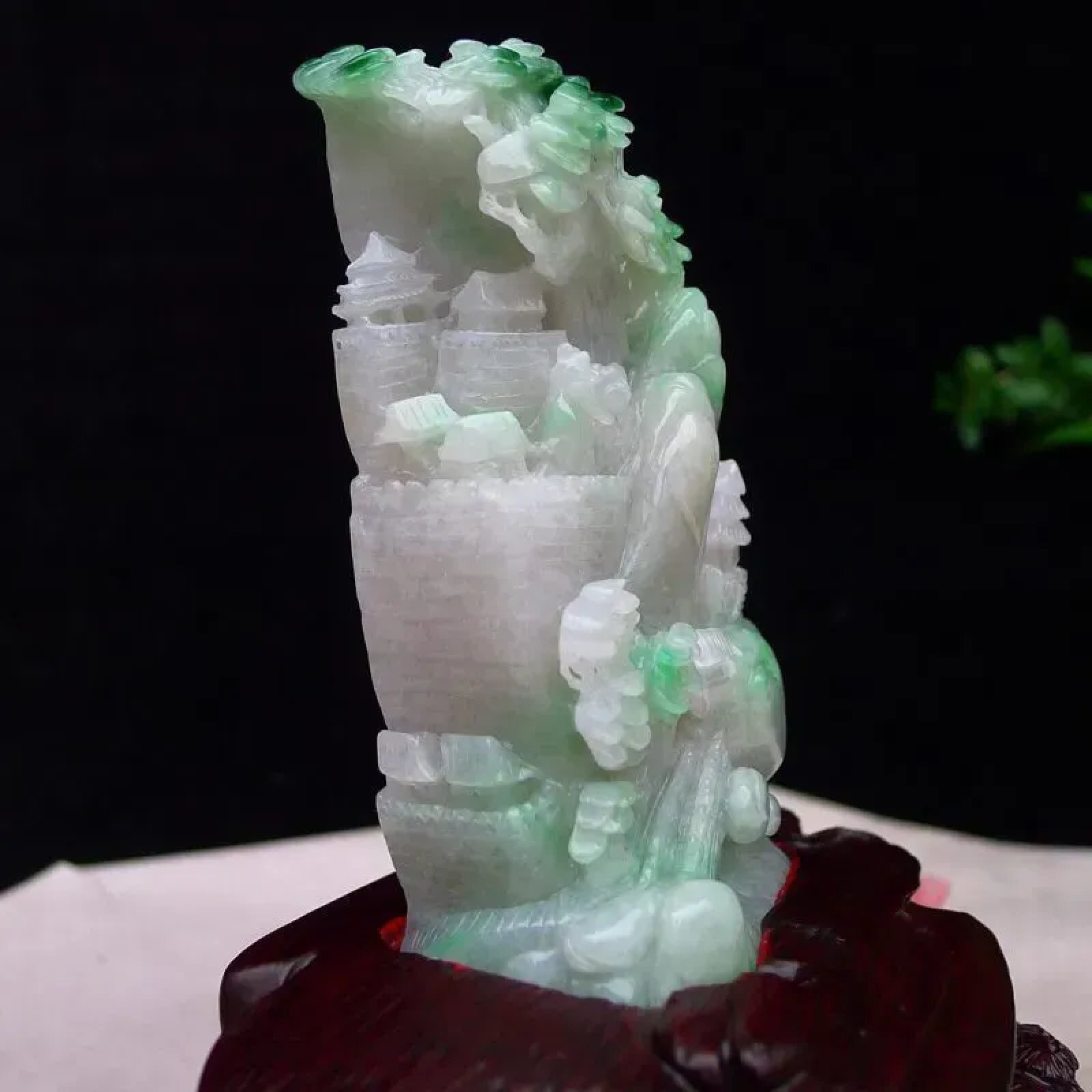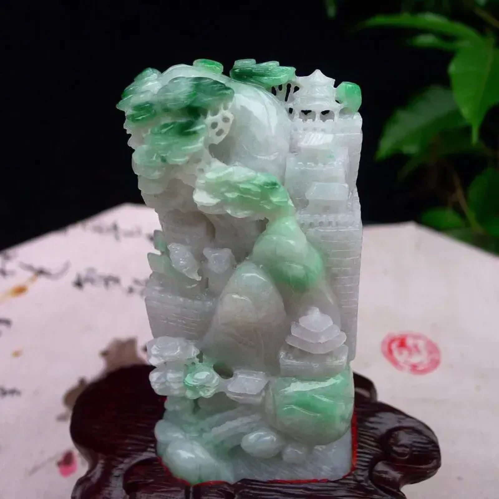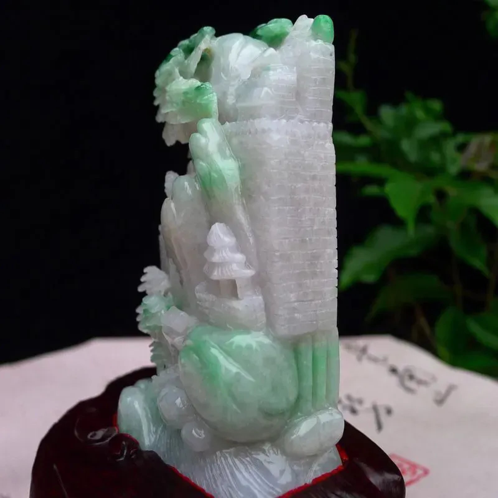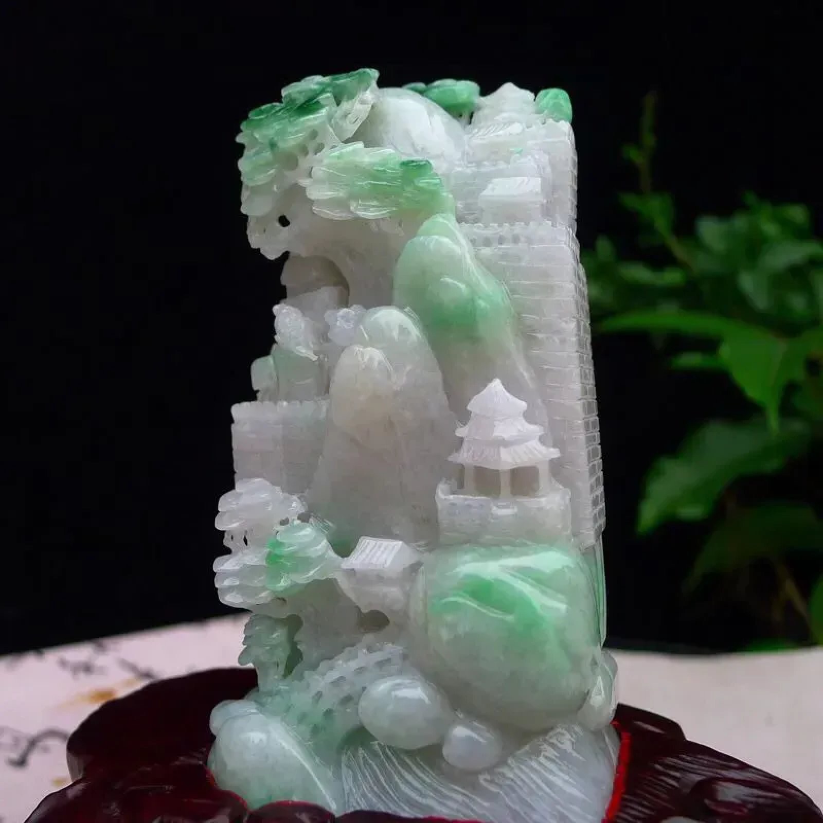 | 特点: | 翡翠简介:1. 老坑水润,质地温润,具备一定的通透感,表面光泽柔和莹润,是质感优良的中高端翡翠种水。2. 主体为淡白底,部分区域隐带浅绿色,搭配天然飘绿俏色:绿色清新灵动,巧妙分布于山水、植被等细节区域,色泽协调自然,俏色运用提升了造型的鲜活感与层次感。3. 精工多层次镂空雕:题材融合长城、山水、亭台等元素,长城纹理、亭台结构、植被细节刻画精细逼真;层次丰富、立体感极强,既还原了长城的厚重质感,又兼具山水题材的雅致意境,工艺细腻且表现力突出。4. 长城象征家国安康、基业稳固,搭配山水题材则承载着宁静致远、福寿绵长的美好祈愿,整体寓意家国安康、生活悠然顺遂。5. 适合放置在客厅博古架、书房案台或办公室展示等区域,既契合其厚重雅致的气质,也能传递家国安康的美好寓意。具有很高的艺术和收藏价值,是一件难得的精品摆件,值得您的拥有! |