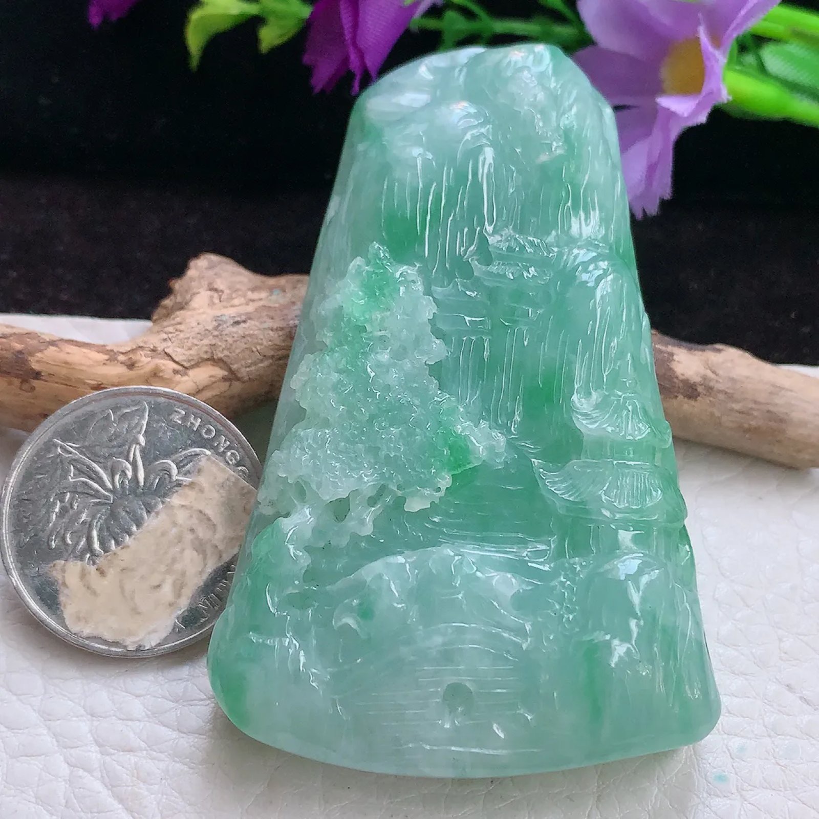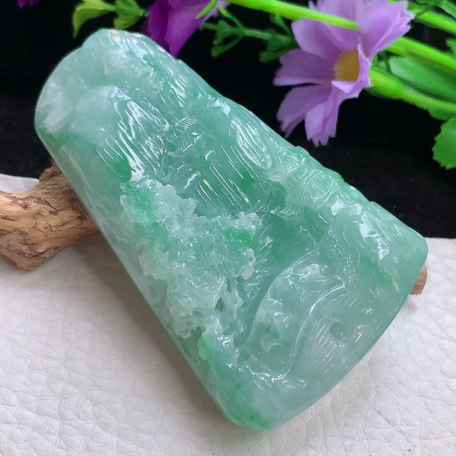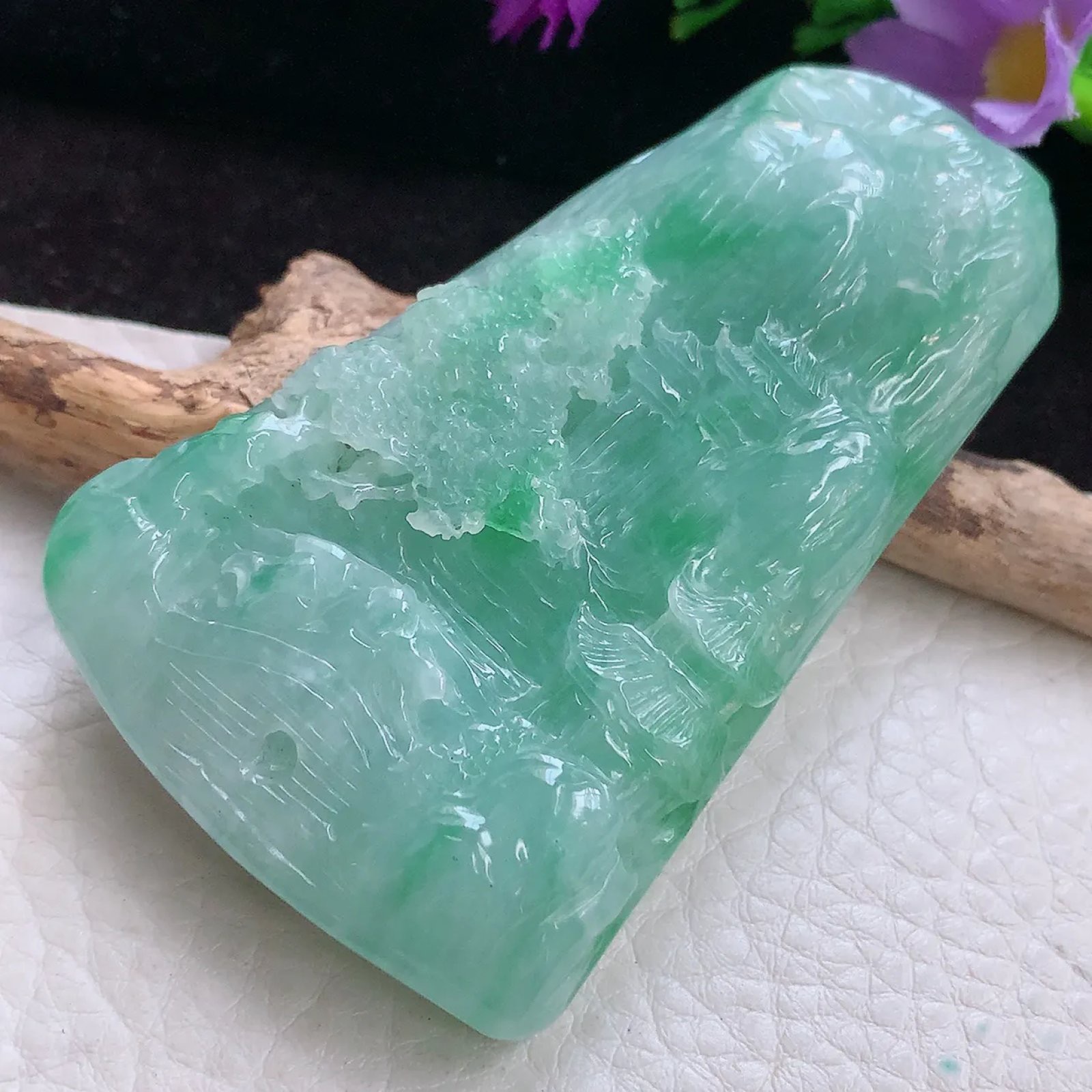 | 特点: | 翡翠简介:1. 老坑老种料,质地细腻通透,光泽莹润感强,是品质较好的中高端翡翠种水,质感清透柔和。2. 呈现均匀清新的淡绿色,搭配自然飘绿:颜色协调灵动,视觉质感温润清爽,是翡翠中讨喜的清新绿色系色泽。3. 采用精工浮雕工艺:题材为山水亭台景致,树木纹理、建筑细节刻画精细逼真;线条流畅自然,层次感丰富,精准还原了山水意境的雅致韵味,工艺细腻且表现力突出。 4. 山水题材寓意 “宁静致远、福寿绵长”,同时承载着 “寄情山水、心境平和” 的美好祈愿。5. 作为翡翠吊坠,尺寸得体,冰莹清透的质感搭配清新绿色泽,佩戴于颈部显得典雅大气,适配日常装饰与各类服饰风格,尽显雅致审美,让人爱不释手。具有很高的艺术和收藏价值,是一件难得的精品吊坠,值得您的拥有! |