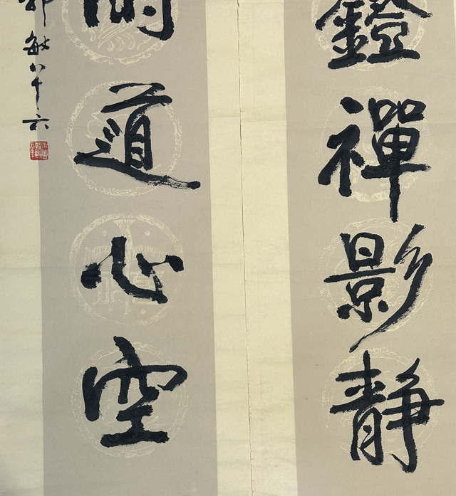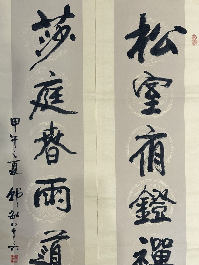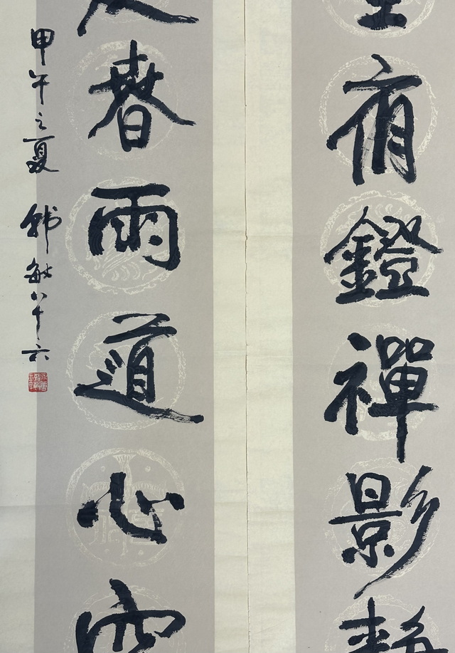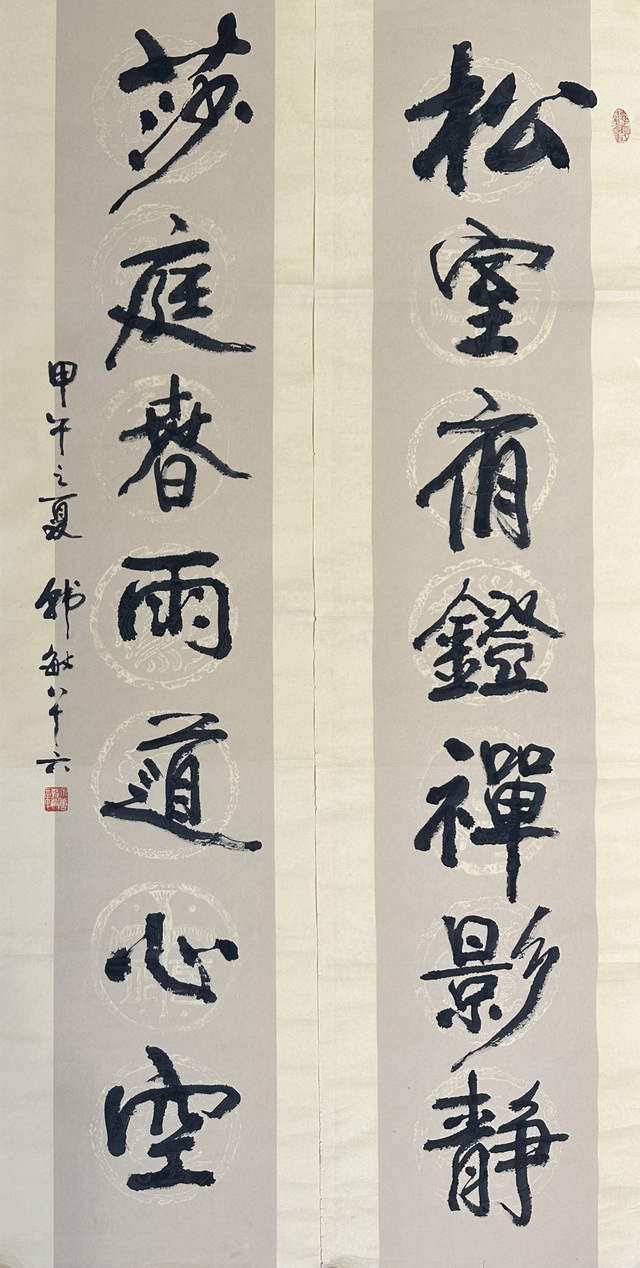 | 备注: | 释文:松室夜灯禅影静,莎庭春雨道心空。 |