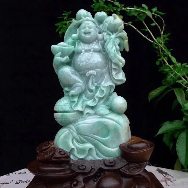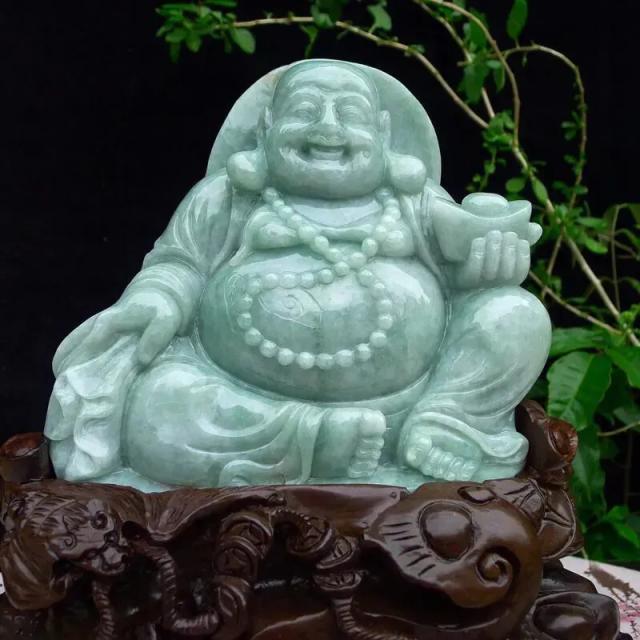 002 天然A货缅甸翡翠浅绿(弥勒佛)福佛招财进宝福寿安康吉祥如意精品摆件(赠送定制黑檀实木底座+赠送A货鉴定证书)
