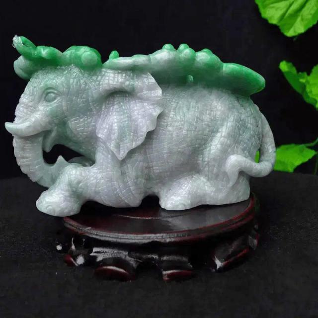 007 天然A货缅甸翡翠飘阳绿(大象)万象更新吉祥如意精品摆件(赠送定制黑檀实木底座+赠送A货鉴定证书)