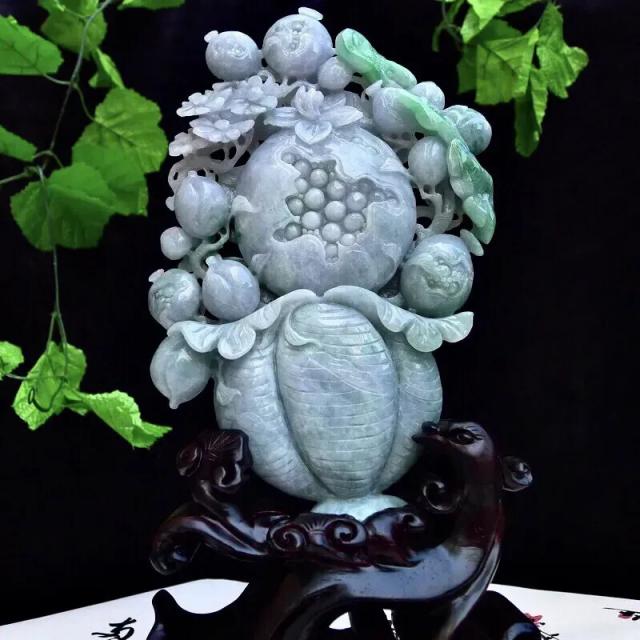 009 天然A货缅甸翡翠飘绿(果篮)福禄寿富贵兴旺精品摆件(赠送定制黑檀实木底座+赠送A货鉴定证书)