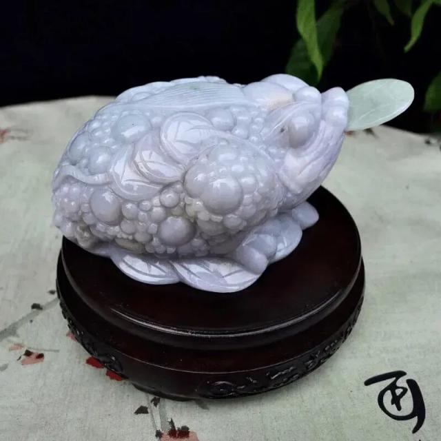 018 天然A货缅甸翡翠浅紫罗兰(金蟾)招财进宝紫气东来精品摆件(赠送实木底座+赠送A货鉴定证书)