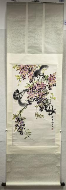 025 杨邨 紫藤松鼠 立轴
