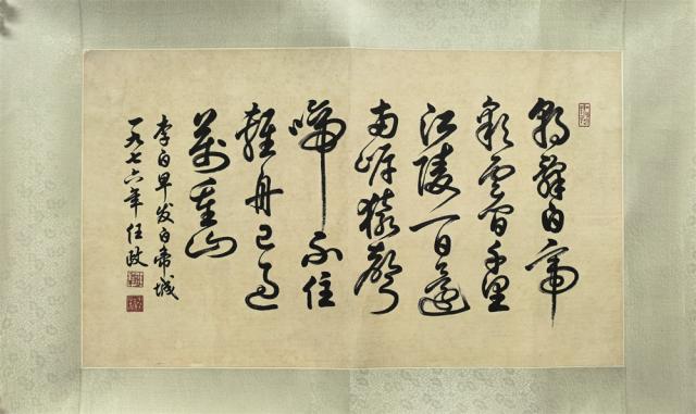 029 任政 书法李白早发白帝城 1976年 镜片