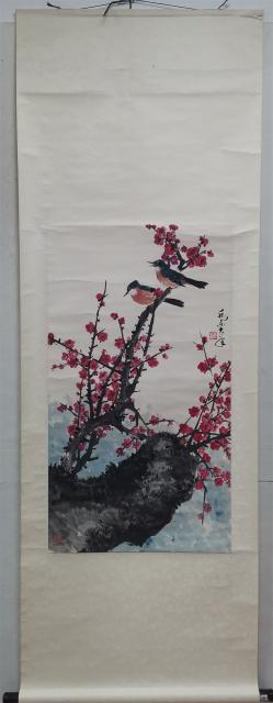 031 乔木 红梅双雀 立轴