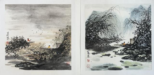035 姚菊英 山水二帧 托片