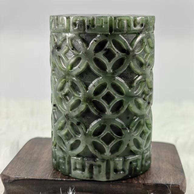 016 和田玉青玉镶嵌财神打火机(附带数据线)