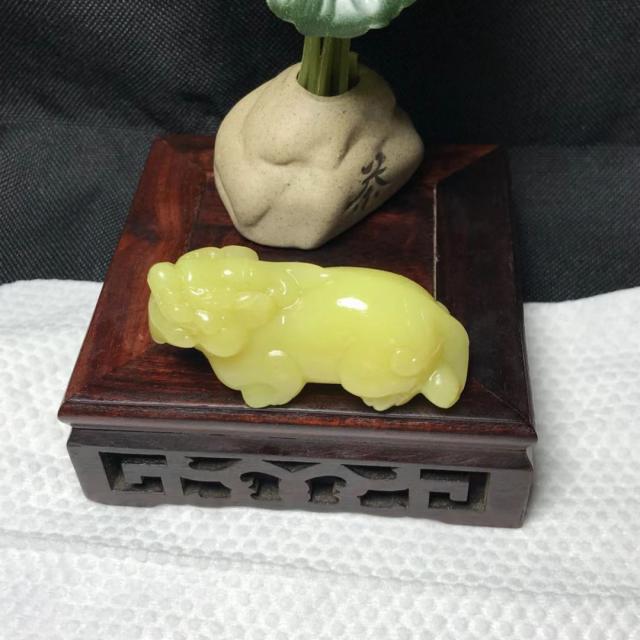 007 纯天然和田玉黄口料爱不释手的貔貅(望天吼)把玩件(出产地新疆黄口,羊油质感,一级黄,做工精美)