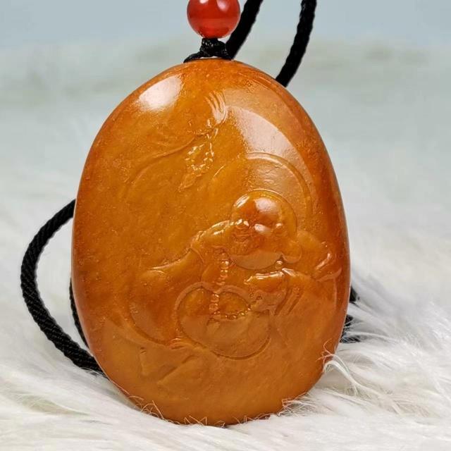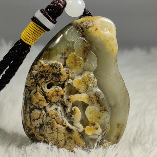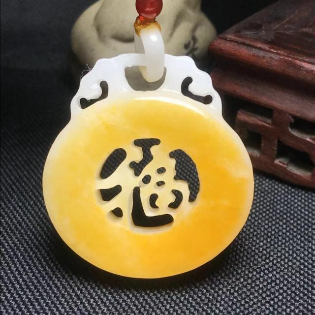 011 纯天然和田玉籽料福牌挂件(出产地新疆和田,附带天然洒金皮,精美做工,上面挂绳处为一体镂空工艺)