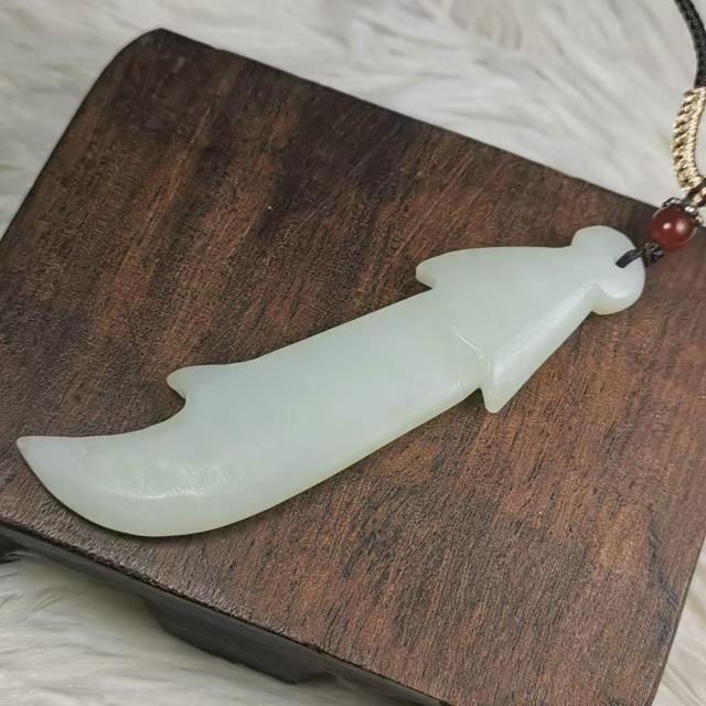 020 纯天然和田玉辟邪护身关公刀挂件(出产地新疆和田,质感一流细腻,做工精美)
