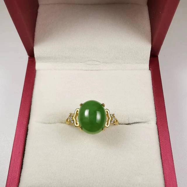 022 和田玉碧玉蛋面戒指(圈口可调节)