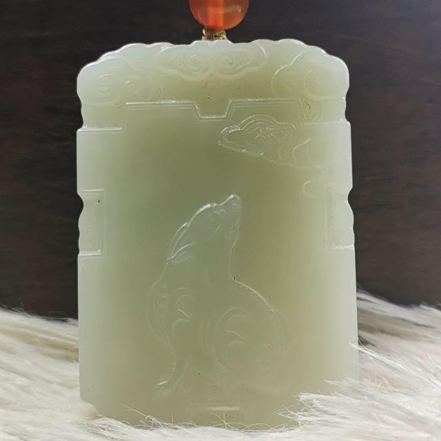 026 纯天然和田玉仿古瑞兽望天吼牌子(出产地新疆和田,厚庄大气,附带气场的精品货源,炫耀版)