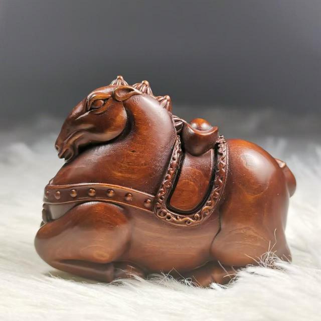 029 纯天然黄杨木(唐马)马上有钱把玩件